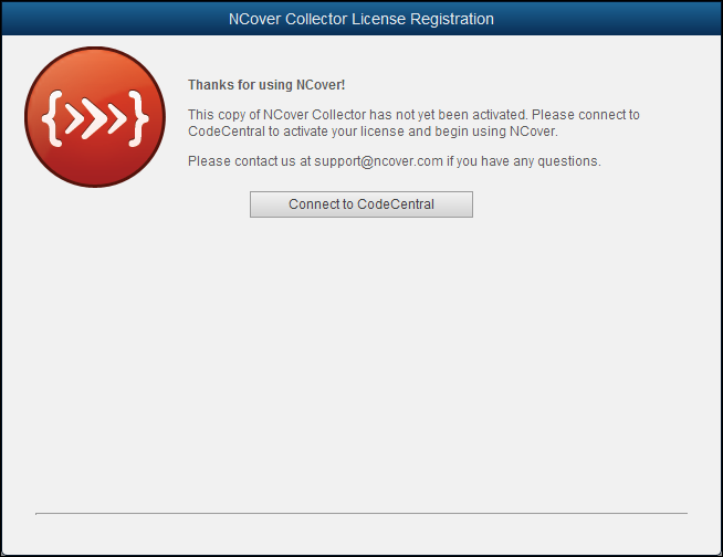 Since Collector depends on connectivity to Code Central, you're prompted to connect to the Code Central server at registration.