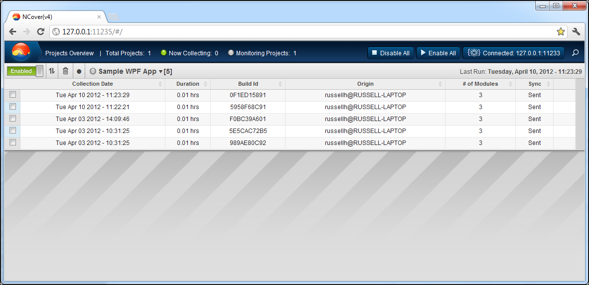 When the sync is complete, the status in the Sync column will change to "Sent" and then the coverage results will be removed from Collector.