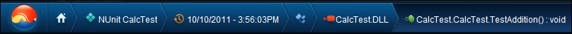 The 'breadcrumb' hierarchy at the top of NCover Desktop shows where you are in the coverage data -- by Project, Execution, Module/Document, Namespace, and Method -- and allows you to easily move back up as many levels as you like.