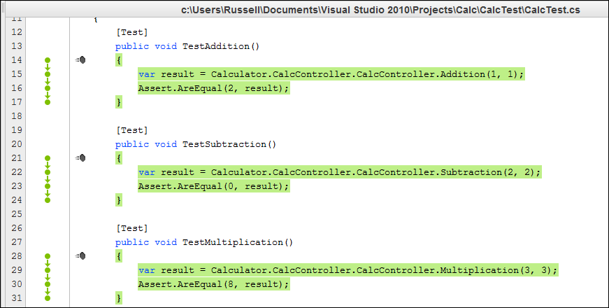In the bottom panel, the Coverage Navigator also shows you what level of coverage you're viewing, along with what specific Modules, Documents, Namespaces, Assemblies or Methods are currently loaded Besides your location, the Navigator also displays a customizable summary of all available code coverage metrics on each line.