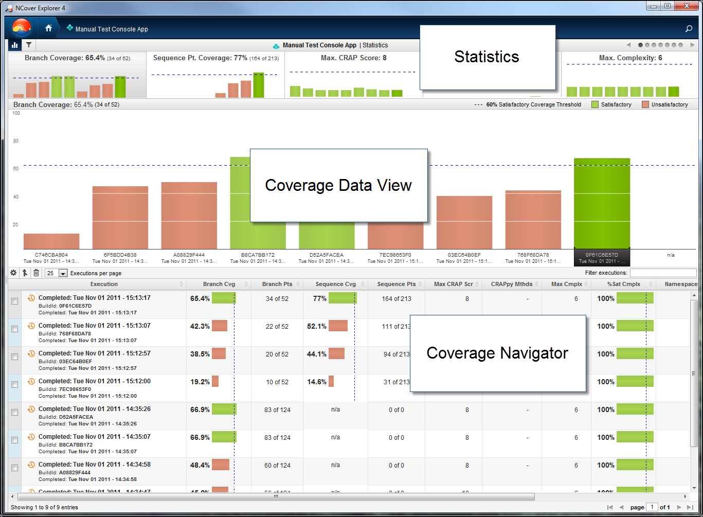 Note: The executions page in Desktop will allow you to browse all your executions, but only the most recent 20 are used for trending (that is, will appear in the Coverage Navigator charts).