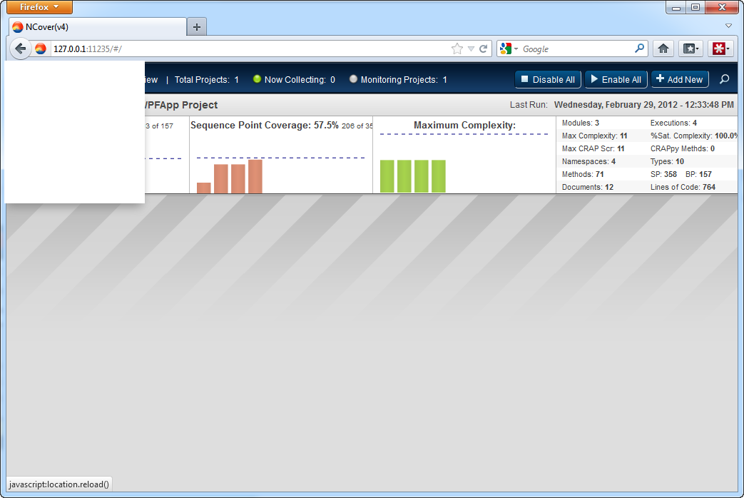 You can also export your coverage data file for viewing in NCover 3 using the included command line utility.
